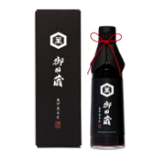 力強い香り、しっかりとした塩味(えんみ)の「御用蔵」は、マグロの赤身のような主張の強い素材とよい相性のしょうゆです。また、しょうゆ造りで一般的な規格調整(原料や発酵による仕上がりのブレを調整する工程)を行わず、仕上がりそのままの味をお届けしています。わずかなブレは仕上がりの個性。一期一会を楽しんでいただけるのも、本商品の一興です。
